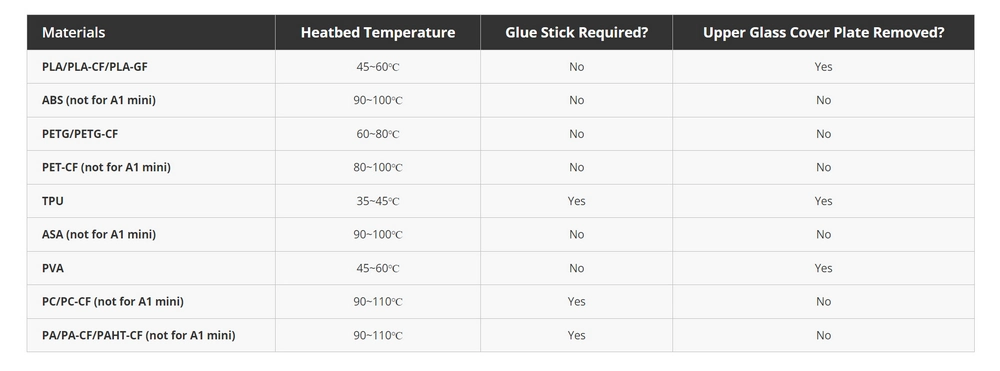 - Bambu Lab priporoča uporabo samo uradnega lepila Bambu Lab na delovnih površinah Bambu Lab in ne more biti odgovoren za kakršno koli škodo, povzročeno na ploščah zaradi uporabe lepila tretjih oseb za delovne površine. Teksturiranega PEI ne čistite z acetonom, saj bo poškodoval površino PEI.